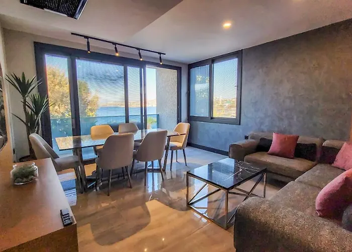 Apartmán Cimentepe Residence Deluxe 5 - Sea View Residence In Yalikavak je plážové ubytování, 10 minut jízdy od Windmills. Toto plážové ubytování se skládá z 2 ložnic a 2 koupelen.